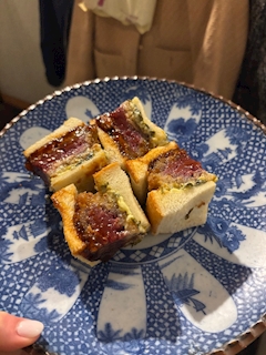 こんちゃ! 1週間始まり〜! 休日にカツサンドを食べました🤍❤️ めちゃうまーーー! 美味しいグルメは元気でるねー💕 今日もエイトオープンしてます! 飲みに来てねーん!