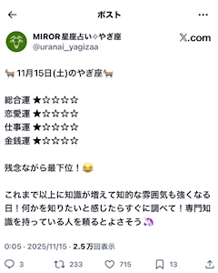やっぴー❗️ 少し早めだけどみなさん今週もお疲れ様です❗️ 突然ですが、みなさんって占いって信じますか❓🔮💭 ちなみに、かこは信じてます🙋🏻♀️(小声) そんでそんで❗️たまーーーーにX(旧Twitter)で自分の星座の“やぎ座 占い”って検索するんですけど… ⬆️ 今日の占い結果見てみたらまさかの最下位😭😭かこと同じでやぎ座だよー❗️って方居ませんかー❓❓(笑) 珍しく(学校の日以外)早起きチャレンジ成功して、朝から動いてて家族やお友達からも褒められてウキウキだったに…🙂↔️ なんか例えるなら急に天国から地獄に落とされた感😞💧⤵️ かこのこと誰か励ましに来てくださーーーーーい❗️(笑) 占い的には最下位だったけどみなさんとお喋りしたりしてたら絶対一気に気分上がる⤴️✨(断言できます❗️) 今日も20時からお店開いてるので待ってます🐑🤍 ってことでみなさんのご来店お待ちしておりますദ്ദി^ᴗ ̫ ᴗ^₎