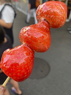 出勤なう! 写真はこないだ何年ぶりかに食べたイチゴ飴🍓 あんな食べやすかったっけ?もっとガチガチに歯取れそうなって食べてたイメージやった… でも全く可愛くないイチゴ飴やった笑笑