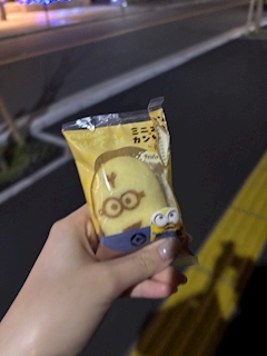 こんちゃ! 今日は仕事終わりお腹が空いたので お客さんに前頂いたミニオンを食べた!笑 食べるのが勿体無いぐらい可愛い😍 味も美味しくて最高ー!!!!🍌 まだお腹が空いてた私は、笑 ボーイくんがくれたお土産も食べました😂💞美味しかったーーー! 最高かよーーーーー 🌸 ほなまたっ